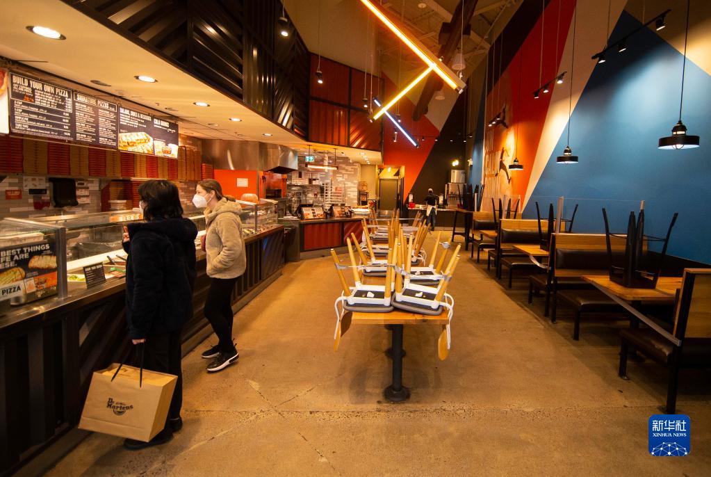 1月8日,顾客在加拿大安大略省沃恩一家关闭堂食区的快餐店点外卖。