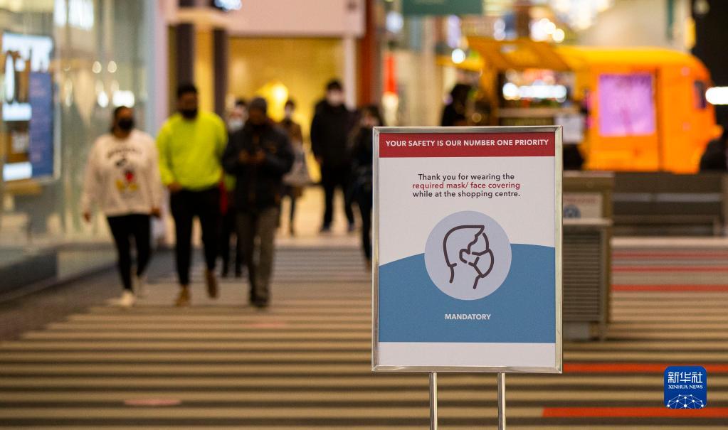 这是1月8日在加拿大安大略省沃恩一家购物中心拍摄的要求戴口罩的告示牌。