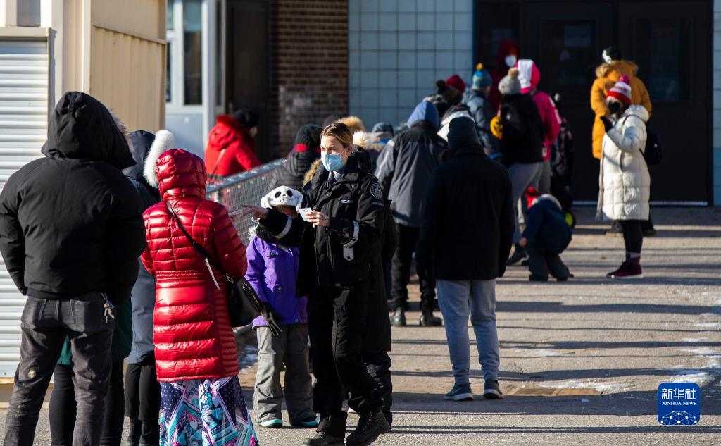 1月8日,人们在加拿大安大略省多伦多一处新冠疫苗接种点外排队。