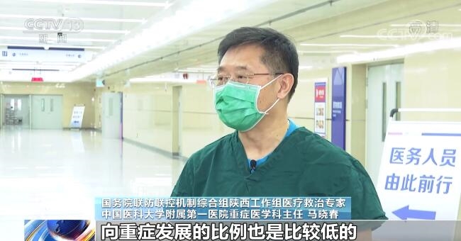 国务院联防联控机制综合组陕西工作组医疗救治专家 中国医科大学附属第一医院重症医学科主任 马晓春:我觉得还是有一些综合的因素在里面,我们中西医的融合,共同在早期就进行积极的干预。另外实际在我们国家开发出来的一些针对性的对病毒本身的治疗的一些制剂,包括中和抗体,实际也可能是有益的。(再)就是接种疫苗的病人,整体的重患率相对来说是低的,而我们实际能够看到的重症的病人,大部分是没有接种疫苗的。这也提示我们,在我们国家积极推动疫苗接种,对于减少这次疫情带来重患的发生,我觉得可能是挺有意义的一件事情。