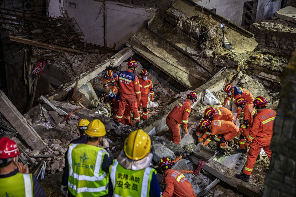 坍塌现场,救援人员在开展救援。新华社记者黄伟 摄