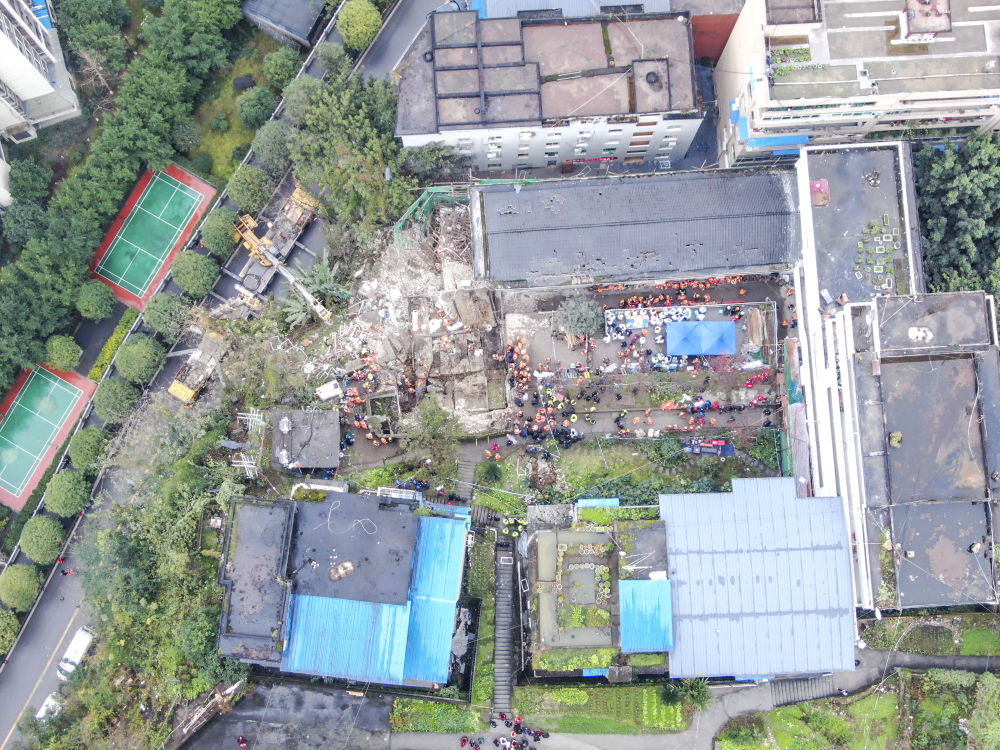 重庆武隆区凤山街道办事处食堂垮塌现场(无人机照片)。新华社记者黄伟 摄