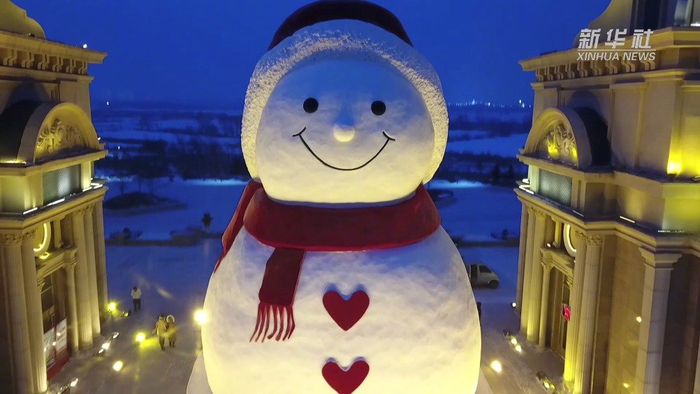【#18米高巨型雪人亮相松花江畔#】一个巨型雪人近日在冰城哈尔滨市的松花江畔亮相。这个戴着红帽子,围着红围脖,嘴角上扬的巨型雪人高约18米、宽约13米、用雪量2000余立方米,堪称“雪人中的巨人”。(记者王建威) 新华社的微博视频