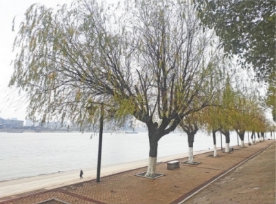 武昌江滩的柳树。实习生王嘉蕾 摄