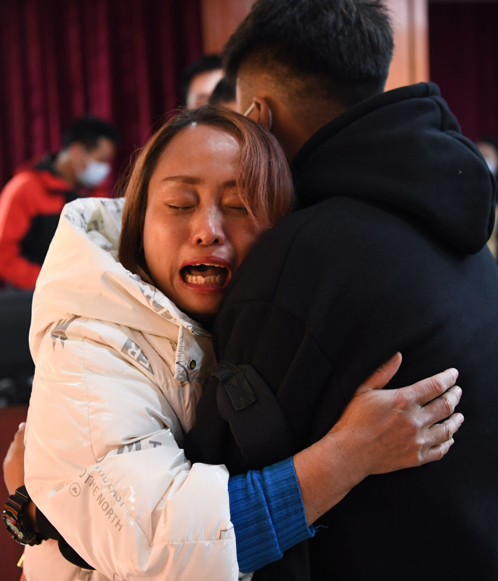12月28日,在广州市公安局花都区分局刑警大队,罗艳与寻找了22年的儿子拥抱在一起。新华社记者邓华 摄