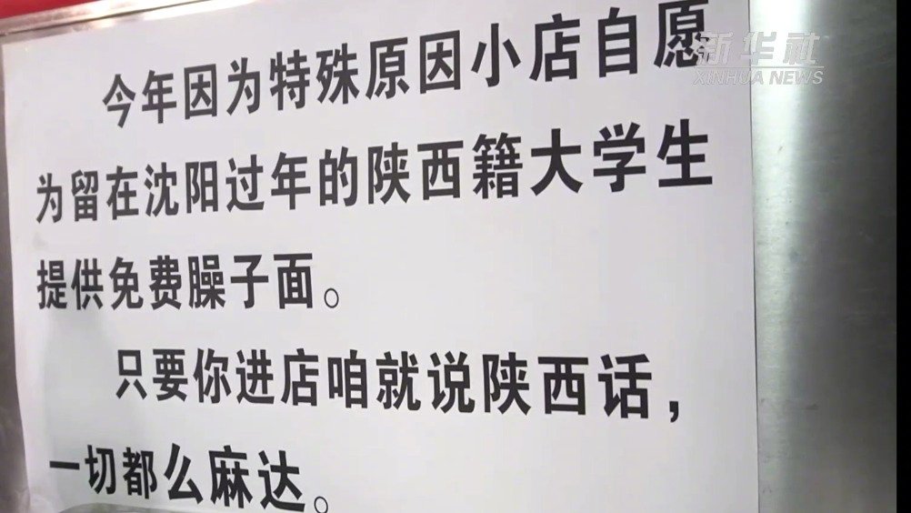 #这家面店墙上贴着特殊奖状#【#沈阳一家面店免费为陕西籍大学生做臊子面#】西安本轮疫情暴发以来,辽宁沈阳的一家面店,一直在为留沈的陕西籍大学生免费提供臊子面。老板程亚娟是陕西岐山人,早在2020年10月,她就推出一项为困难群众提供“爱心面”的活动,受到爱心人士支持,小店的一面墙上贴着她为爱心人士写的奖状。她说:“想告诉陕西籍的孩子们,如果你有困难,过年不回家,就到姨这边来吃臊子面。”(记者武江民) 新华社的微博视频