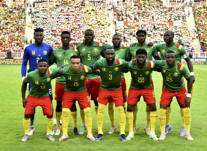 1月9日,喀麦隆队首发球员在揭幕战前合影。新华社发(科普索摄)