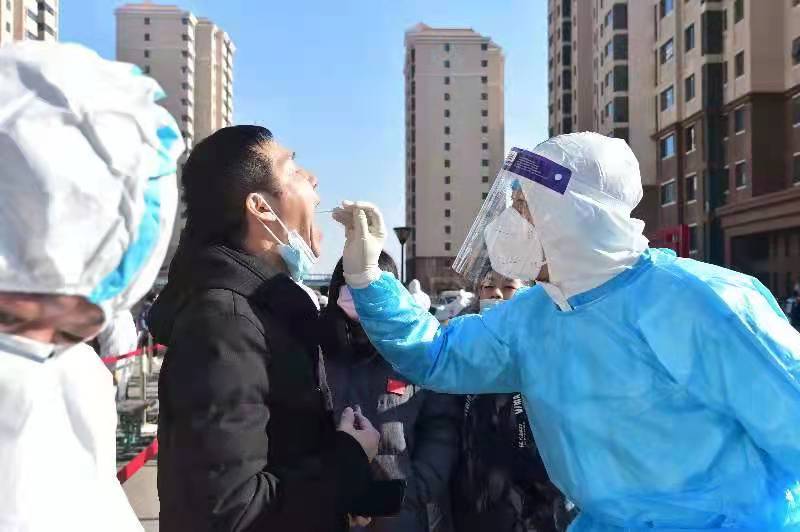 天津市津南区居民正在社区内进行核酸检测。新华社记者刘惟真摄