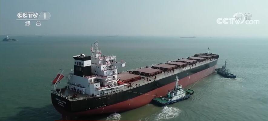 助力全球远洋运输,我国自主研发建造的超大型散货船10日在广州交付。这个船型由中国船舶打造,满足全球限制硫排放的环保要求,适用于装载煤炭、矿石、谷物、水泥等货物,在同等吃水条件下,可以多装600吨货物。未来远洋运输对于船舶大型化的需求越来越高,目前这一船型的订单已达8艘。此次交付的这艘船已被美国大型船运公司租用,将用于美洲航线大豆、玉米等谷物的运输。