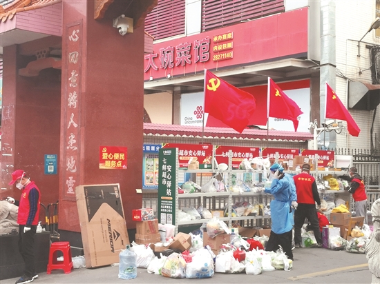 壹村东心岭有数百栋老旧楼房,大多为4层至5层,不少楼房没有电梯。“我们都是义工联的志愿者,约有200名义工分为两班,从早上8点开始一直到晚上10点,专门负责传递包裹。三餐时包裹最多,每分钟都能收到几十个。大到桶装水,小到奶茶、牙膏,各种生活用品都有。”龙岗义工联志愿者王悦告诉羊城晚报记者,志愿者们每日都要将1万多个包裹送到居民手中,居民生活有保障,志愿者就是他们的脚力:“居民脚步受限,但生活质量不能降!”