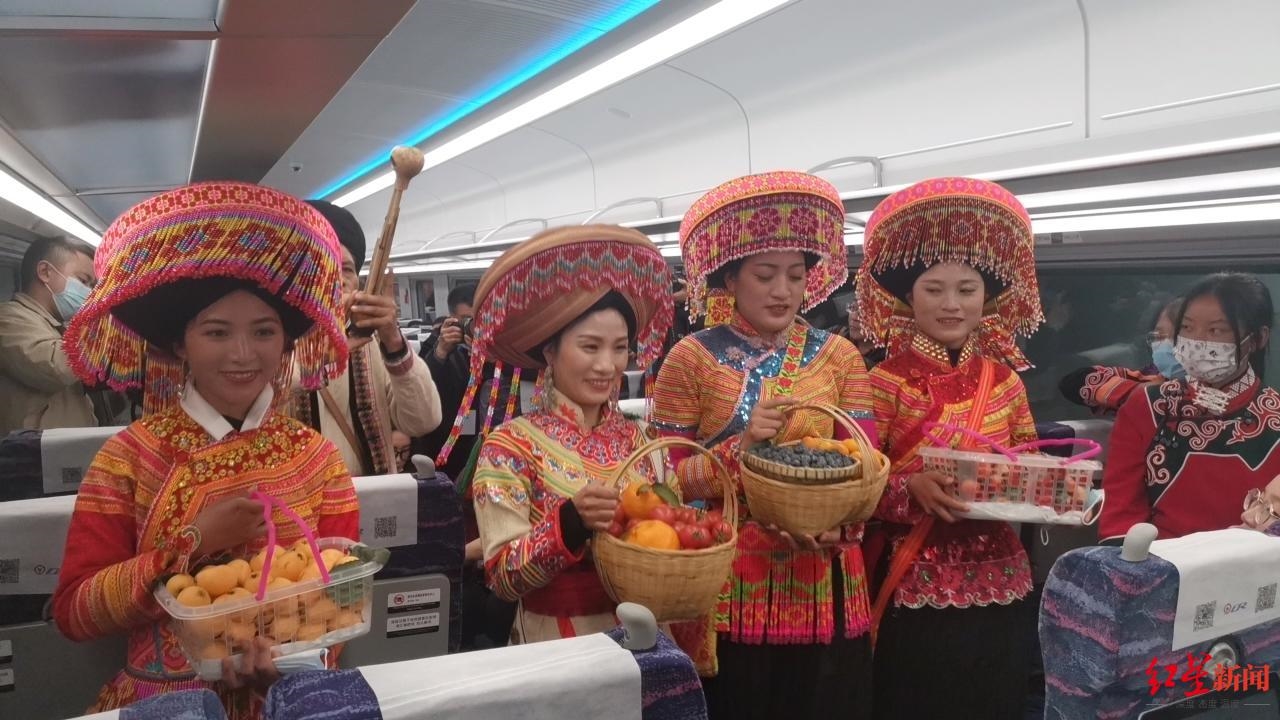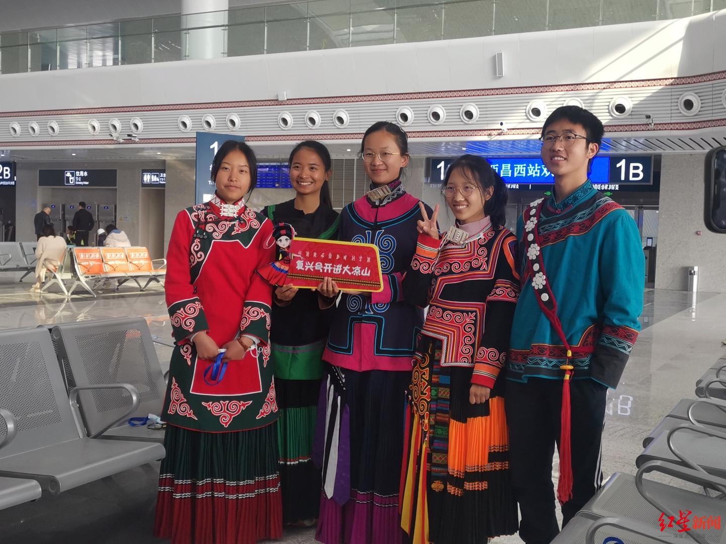 ↑莫色阿依、孙明等五名学生专门来体验乘坐大凉山首趟动车