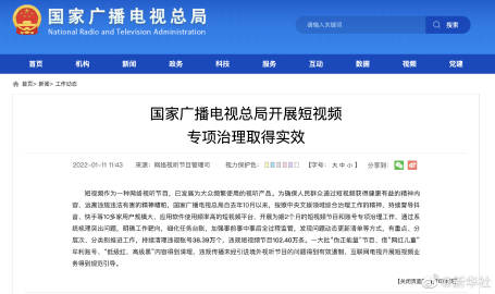 【#广电总局开展短视频专项治理取得实效#】记者11日从广电总局获悉,国家广播电视总局自去年10月以来,持续督导抖音、快手等10多家用户规模大、应用软件使用频率高的短视频平台,持续清理违规账号38.39万个,违规短视频节目102.40万条。一大批“伪正能量”节目、借“网红儿童”牟利账号、“低级红、高级黑”内容得到清理,#违规传播未经引进境外视听节目问题得到有效遏制#,互联网电视开展短视频业务得到规范引导。(记者王鹏)