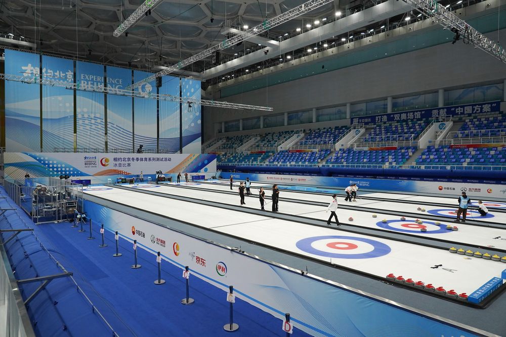 2021年4月6日,运动员在进行冰壶项目测试活动。新华社记者 彭子洋 摄