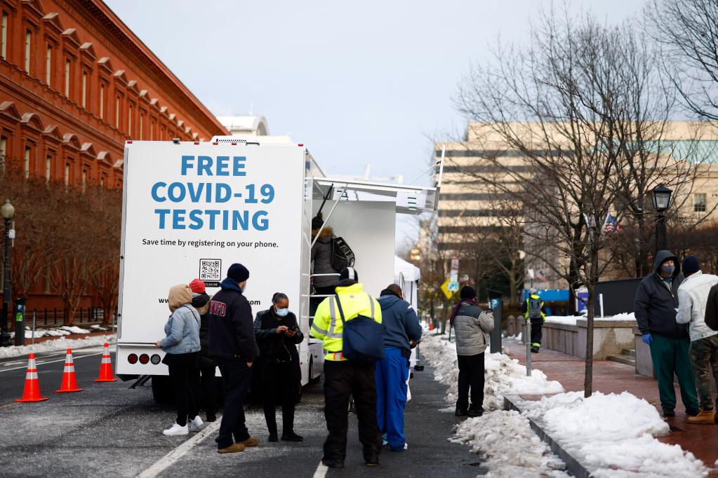 今年1月5日,人们在美国首都华盛顿一处流动检测点进行新冠病毒检测。近期,美国民众在圣诞、新年假期出行、聚集活动增多,加之奥密克戎毒株在美加速传播,使得美国疫情严重反弹。(新华社发,沈霆摄)