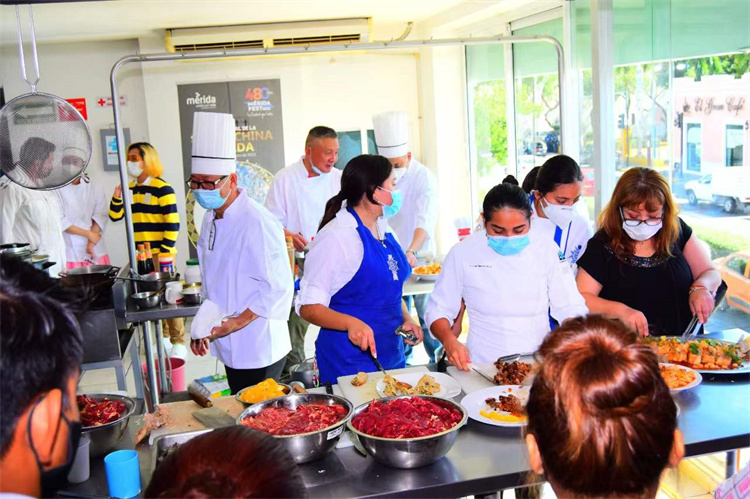 1月7日至1月11日,在梅里达著名的蒙特霍大道美食街举行了为期一周的美食活动,向公众展示中国美食,当地民众与游客皆驻足于此,对中国美食皆表现出了极大的兴趣。很多民众表示,这些美食和墨西哥美食风格迥异,也和在当地中国餐馆享受到的中国食物味道不同,非常新奇。展览现场还展示了墨西哥华人农场华腾农业种植的中国蔬菜,吸引了当地市民们前来围观,并向工作人员们询问烹饪方法,当地民众和游客在现场品尝到美味中国蔬菜,表示虽然这些食物在他们的日常生活中并不常见,味道却很值得尝试。