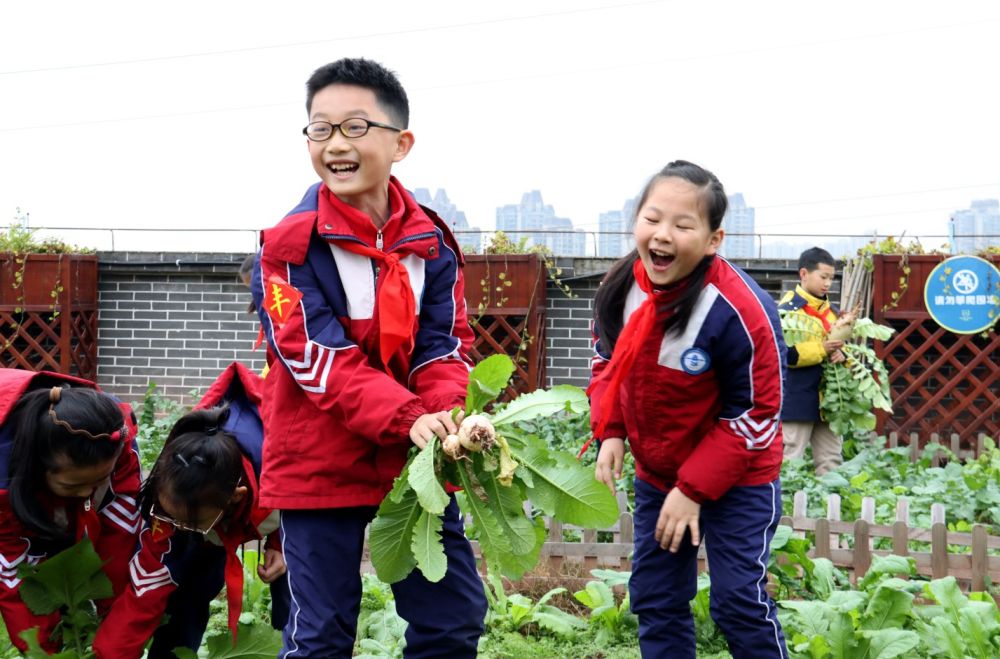 “我拔的萝卜是圆的,和你的长萝卜不一样!”“我拔的这个好小啊,但是好像人参……”在重庆两江新区星湖学校的“开心农场”里,师生一起种下的萝卜迎来了丰收。临近期末,孩子们领到的不是试卷和作业,而是一项特别的任务——拔萝卜。