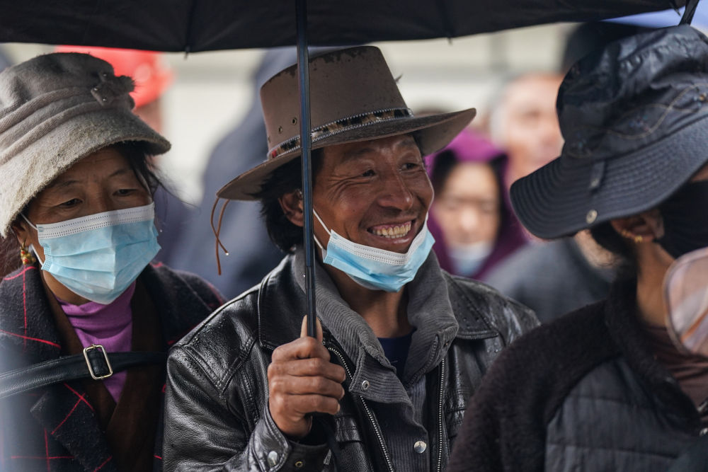 ↑ 2021年7月24日,在四川甘孜藏族自治州稻城县疫苗接种点,当地群众排队等待接种疫苗。