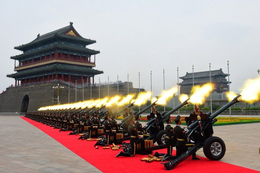 ↑ 2021年7月1日上午,庆祝中国共产党成立100周年大会在北京天安门广场隆重举行。这是礼炮鸣响。