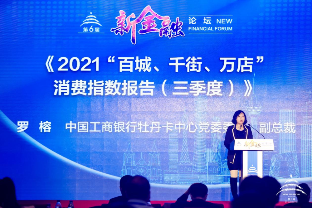 今天,在瞭望智库第六届新金融论坛的盛大场合,我很高兴能代表中国工商银行牡丹卡中心来发布《2021“百城千街万店”三季度消费指数报告》。