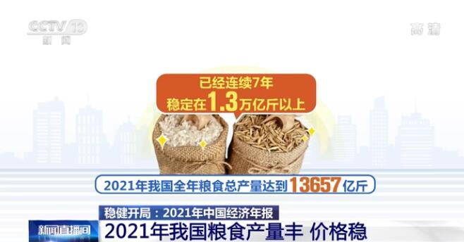 作为“百价之基”的粮食价格在2021年运行平稳,1—12月平均,居民消费价格粮食项同比上涨1.1%。价格稳的背后是我国粮食的再获丰收,2021年,我国全年粮食总产量达到13657亿斤,已经连续7年稳定在1.3万亿斤以上。