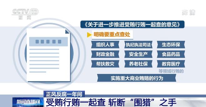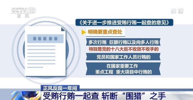 2021年9月,中央纪委国家监委会同有关单位联合印发《关于进一步推进受贿行贿一起查的意见》,明确要重点查处多次行贿、巨额行贿以及向多人行贿,特别是党的十八大后不收敛不收手的;党员和国家工作人员行贿的;在国家重要工作、重点工程、重大项目中行贿的;在组织人事、执纪执法司法、生态环保、财政金融、安全生产、食品药品、帮扶救灾、养老社保、教育医疗等领域行贿的;实施重大商业贿赂的行为。