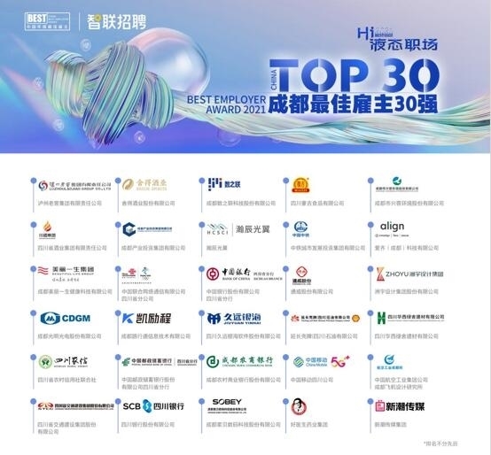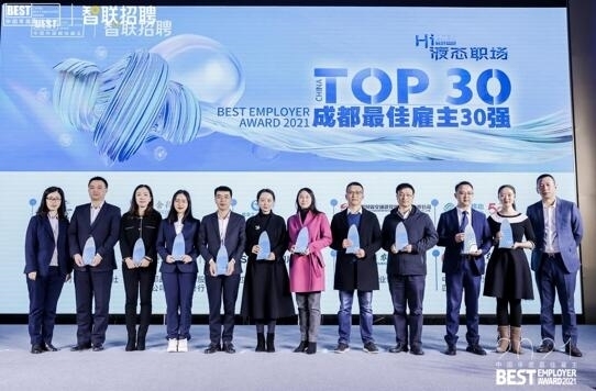 1月13日,“Hi 液态职场”2021中国年度最佳雇主颁奖盛典-成都活动举办,活动现场颁发了2021中国年度最佳雇主成都30强。