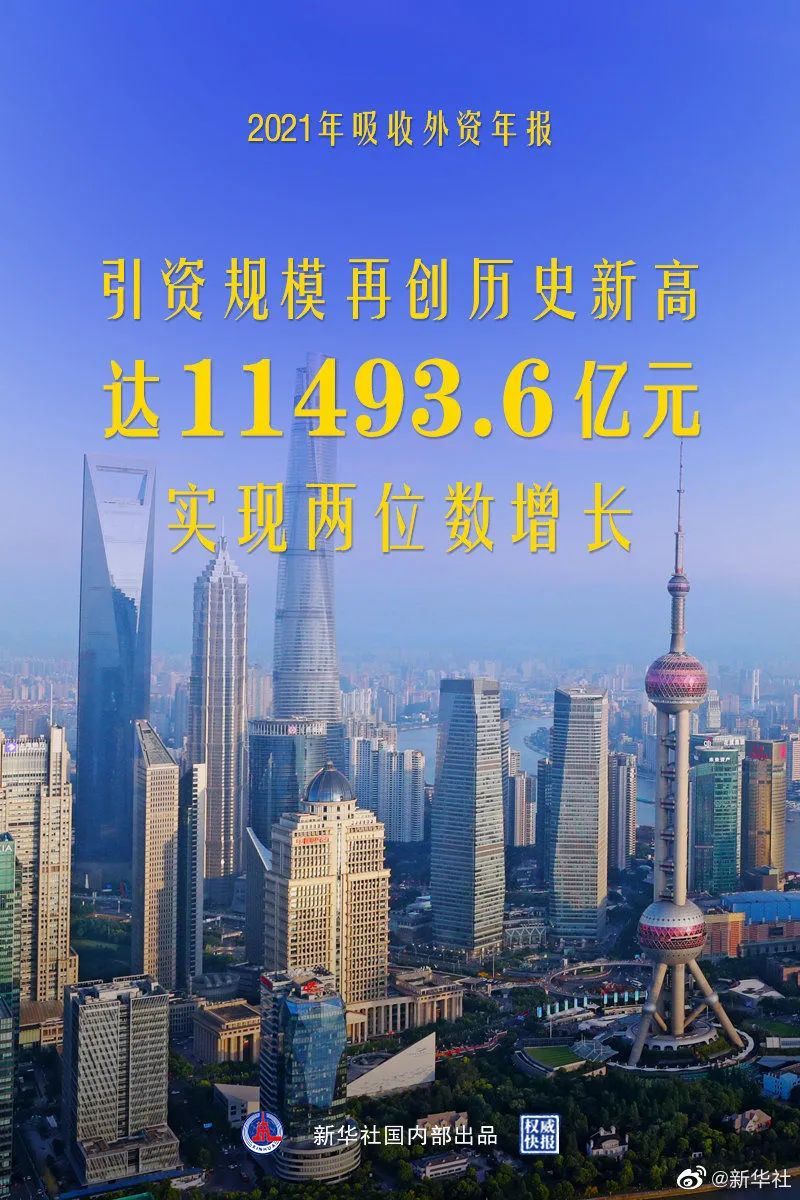 商务部发布的数据显示,2021年全国实际使用外资金额11493.6亿元,同比增长14.9%,引资规模再创历史新高。