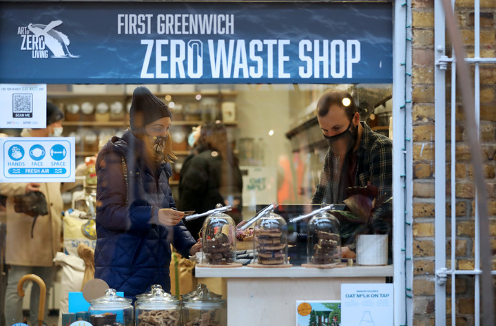 1月8日,人们佩戴口罩在英国伦敦一处市场购物。新华社记者李颖摄