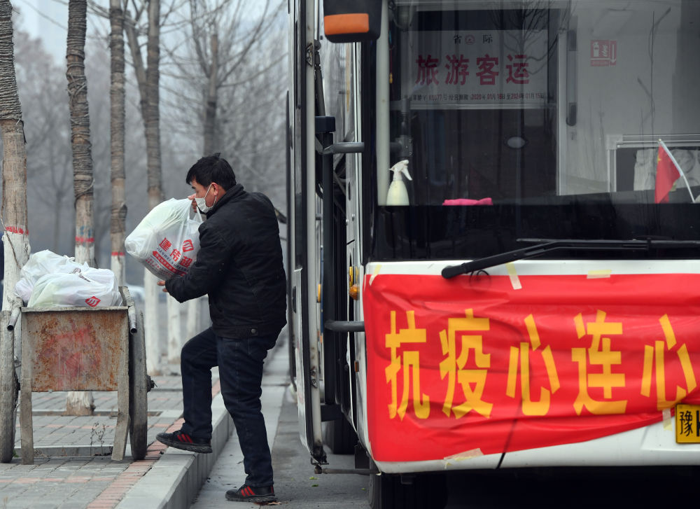 1月10日,在河南省禹州市寨子社区,工作人员将蔬菜包卸车。新华社记者 李嘉南 摄