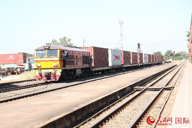 | 一列国际货运列车从老挝万象驶入泰国廊开火车站。按照规划,这条铁路线将建设中泰高铁,对接中老铁路。人民网记者 孙广勇摄 |