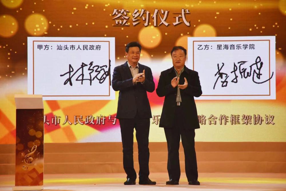 启动仪式上,汕头市政府与星海音乐学院签订《战略合作框架协议》,通过校地合作,整合专业资源力量,助力亚青会音乐系统建设工作,共同推动粤东地区文化艺术交流合作。