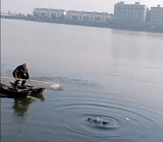 河南信阳市一名小伙落水,危急时刻,今年 69岁的邱德友踏着小船而来,成功将小伙救起。