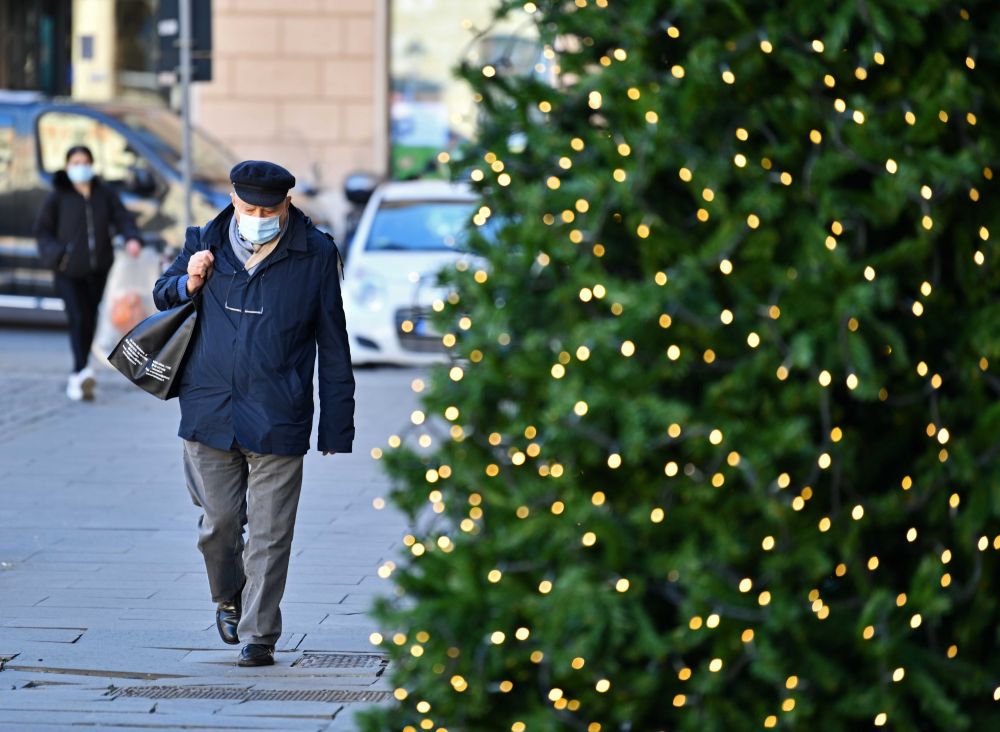 ↑2021年11月30日,行人佩戴口罩走在罗马街头。