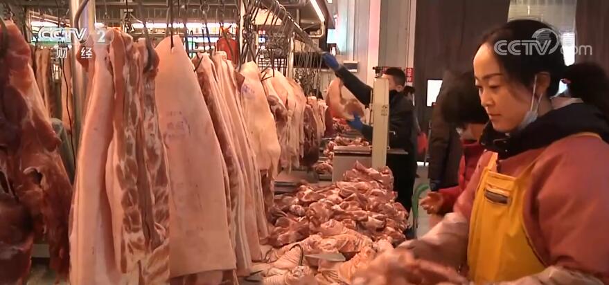在青岛城阳区生鲜肉交易市场里,前来买猪肉、灌香肠的市民络绎不绝,摊位老板一边卖猪肉,一边帮顾客代灌香肠,忙得不亦乐乎。