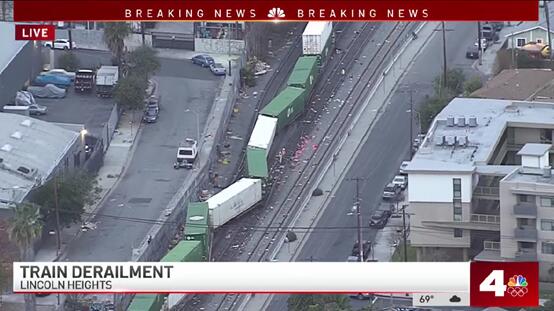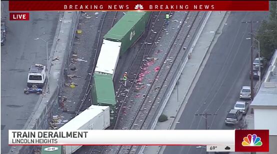 【环球网报道 记者 张晓雅】美国加利福尼亚州铁路“又出事”了。美国全国广播公司(NBC)最新消息称,一列火车当地时间15日在加州洛杉矶林肯高地脱轨,事发地点正在此前被美媒曝光出现“灾难片场景”的货运火车遭洗劫地附近。