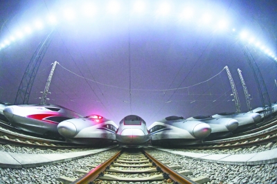 2022年铁路春运自1月17日起至2月25日止,共计40天。记者了解到,今年武铁春运期间,预计共发送旅客1660万人次,日均41.5万人次,恢复到2019年春运的70%。铁路部门优化多项服务举措,让旅客出行体验更好。图为1月16日凌晨2时许,在武汉动车段存车线,一列列完成检修的动车组集结完毕,犹如“陆地航母”一般,蓄势待发,迎接春运。