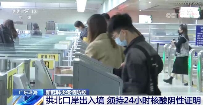 根据当前新冠肺炎疫情防控需要,经珠澳联防联控机制协商,昨天6时起,从珠海经珠澳口岸到澳门人员须持24小时内有效核酸检测阴性结果证明通关。