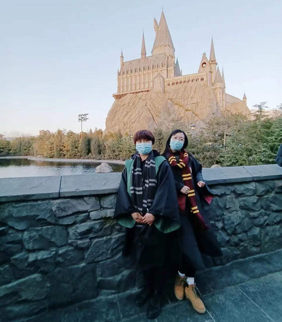 戴上假发、穿上古装的妈妈