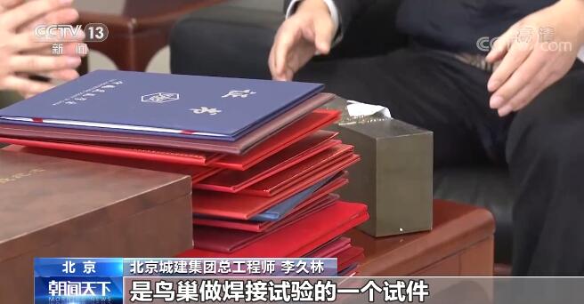 北京城建集团总工程师 李久林:是“鸟巢”做焊接试验的一个试件,就把它留下来了,因为这是“鸟巢”建设很重要的一个纪念,就是这个钢。