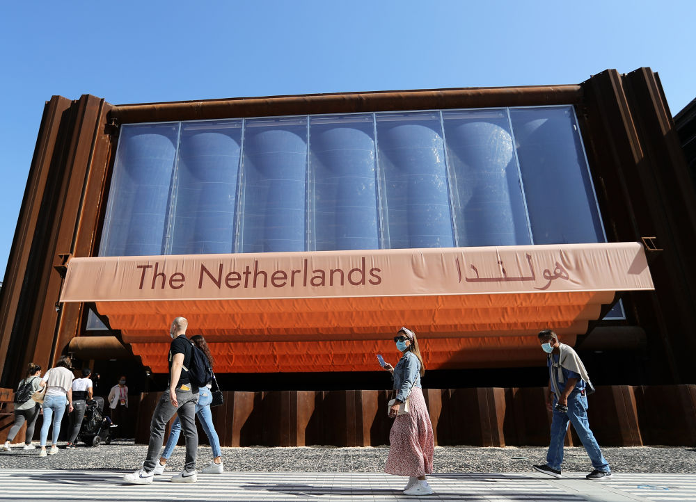 荷兰馆工作人员说,展馆的先进设施可以从空气中收集水分,每天可以提取多达1300升的水,用以灌溉垂直农场上的植物,并被净化成供游客饮用的纯净水。此外荷兰馆建筑基本都是由钢材构成,在世博会结束后,将全部拆卸后回收使用。