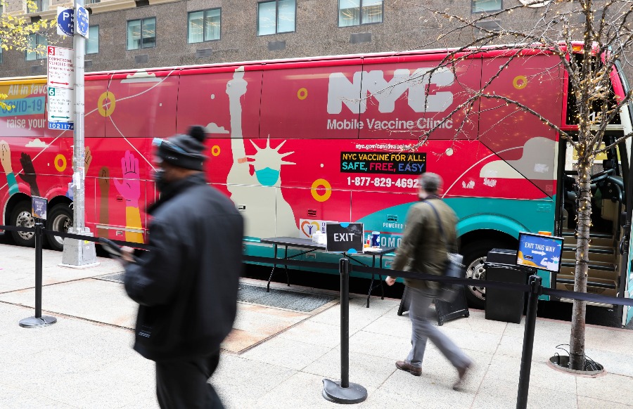 这是2021年12月7日在美国纽约拍摄的新冠疫苗接种车。(新华社记者王迎摄)