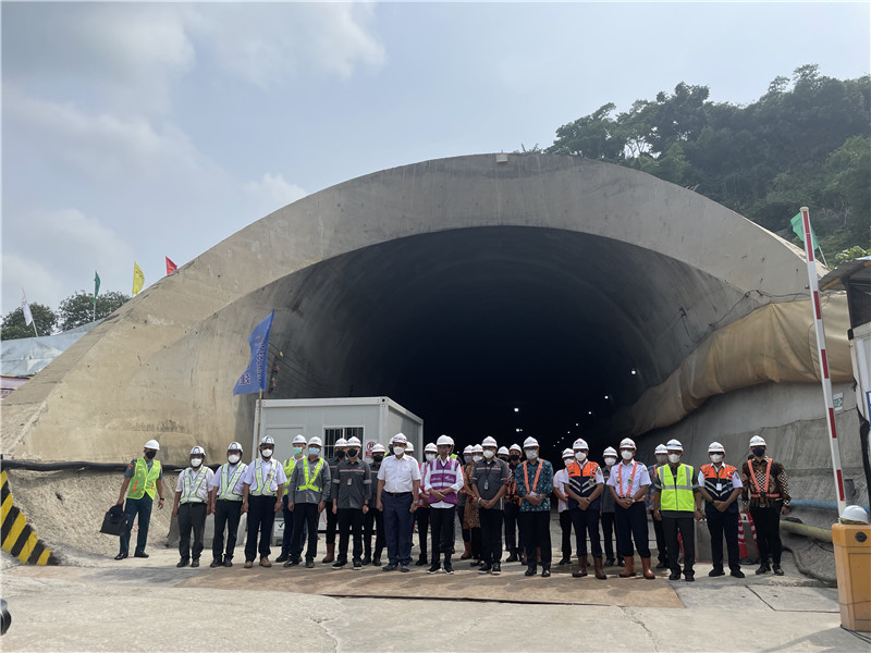 这是佐科总统在其第二个任期内第二次视察雅万高铁。此次视察的2号隧道全长1052m,为单洞双线隧道,最大埋深53.6m,地质条件十分复杂,是雅万高铁的控制性工程之一。目前,该隧道累计开挖740.8m,剩余311.2m,累计完成70.4%。
