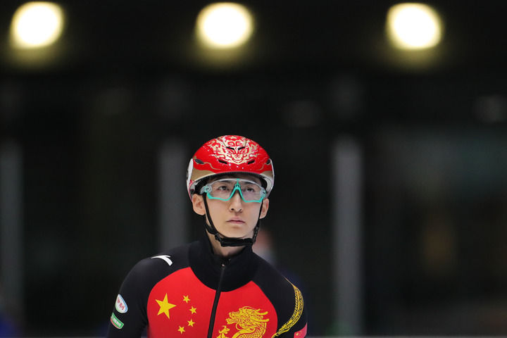 2021年11月28日,中国选手武大靖在国际滑联短道速滑世界杯荷兰站男子1000米半决赛前。新华社记者郑焕松摄