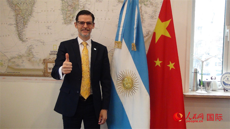 | 阿根廷驻华大使牛望道。人民网记者 吴思萱摄 |