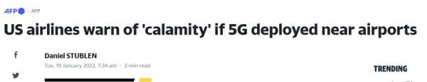 【环球网报道】综合法新社、路透社报道,美国主要航空公司的首席执行官当地时间17日向美国政府致联名信,警告如在美机场附近不加限制地部署5G技术,将对航班运营造成“灾难性干扰”,甚至导致大量航班停飞。