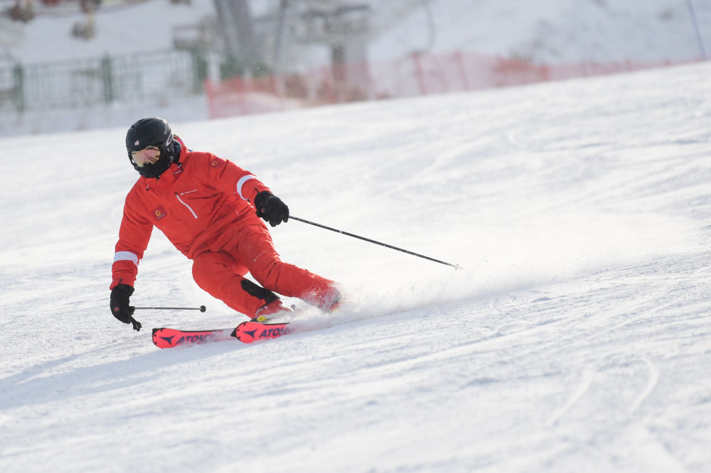 一名滑雪爱好者在呼伦贝尔市扎兰屯市金龙山滑雪场滑雪,享受冰雪运动带来的快乐。新华社记者李志鹏摄