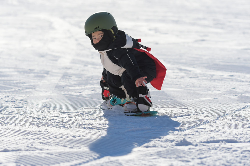今年将满3周岁的郑果在扎兰屯市金龙山滑雪场练习单板滑雪。新华社记者李志鹏摄