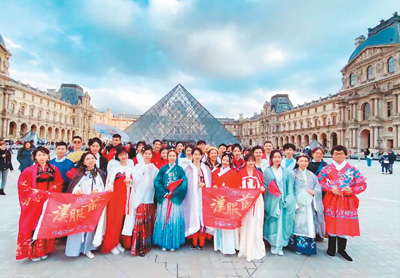 法国汉文化协会在卢浮宫门口举办活动。 (受访者供图) |