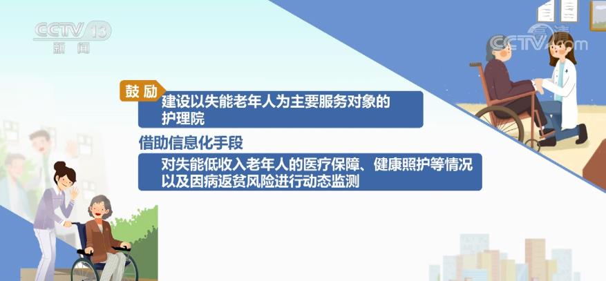 鼓励医疗资源丰富地区的部分一级、二级医院转型为护理院、康复医院。鼓励多方筹资建设基于社区、连锁化的康复中心和护理中心。鼓励有条件的基层医疗卫生机构设置和增加老年护理、康复服务床位。加强失能老年人健康照护服务。鼓励建设以失能老年人为主要服务对象的护理院。借助信息化手段,对失能低收入老年人的医疗保障、健康照护等情况以及因病返贫风险进行动态监测。