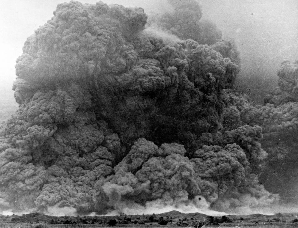 菲律宾皮纳图博火山于1991年6月9日和15日两次爆发,释放出的大量烟雾夹杂着碎石直冲云霄。新华社发